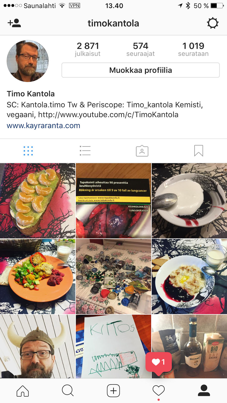 Instagamiin latailen kuvia melkein päivittäin. Seuraajia IG:ssa minulla on 570.