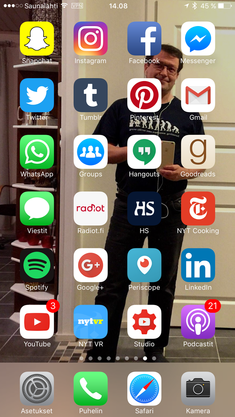 Messenger ja Whatsappia käytän päivittäin. Messengerin voi nyt tehdä oman tarinan ihan SnapChatin tapaan. Snapchat näyttää tarttuvan eri somekanaville kuin virus :)